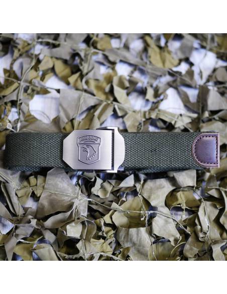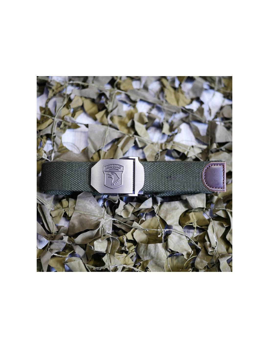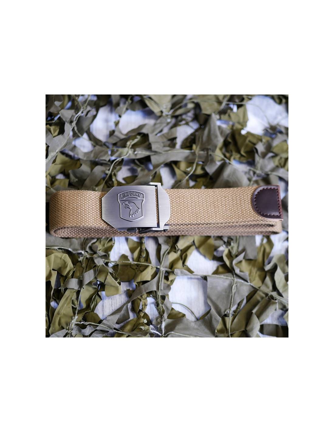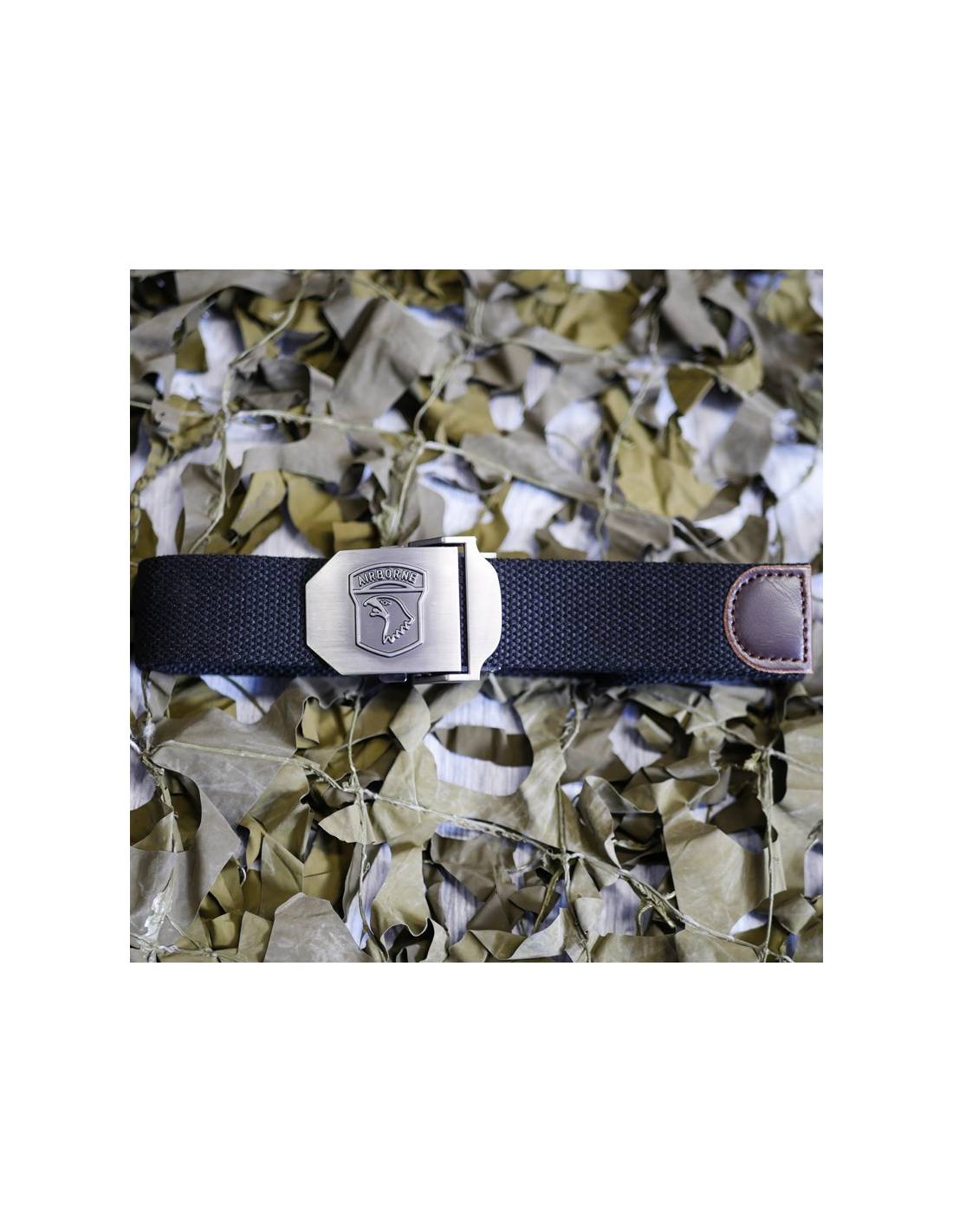 Belt canvas brand 101 Inc with loop removable available in three color. The buckle is engraved with the logo "Airborne".
