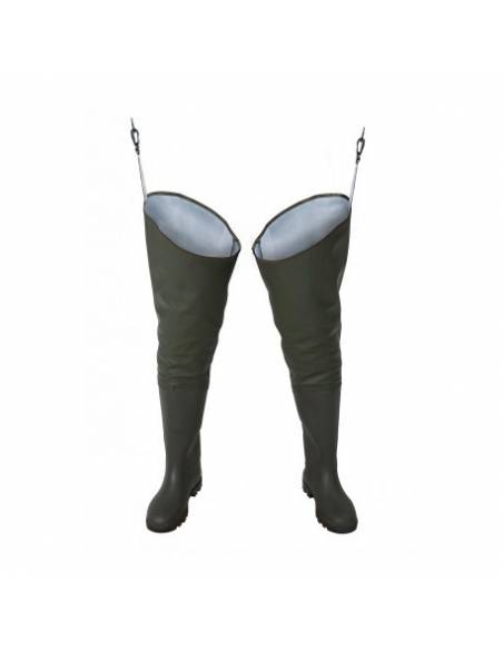 - The waders waterproof have the boots of high quality PVC, welded to the top. The model is made of heavy duty fabric waterproof called Plavitex Heavy Duty that is recommended for all fishermen, those of leisure and professionals and to use for different types of fishing. Thigh-high boots protect the legs against the water. The welds bilateral high frequency increase the resistance of the seams.