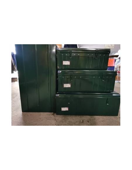 This canteen, made of 5/10mm thick first quality TC recyclable sheet steel, is equipped with side handles and supplied with 1 rod. The parts are assembled and crimped then welded point by point. The sides and the box are ribbed to increase rigidity. It is also equipped with 3 stiffeners on the lid and 2 stiffeners on the underside which facilitates superimposition and allows wheels to be attached for easy transport.