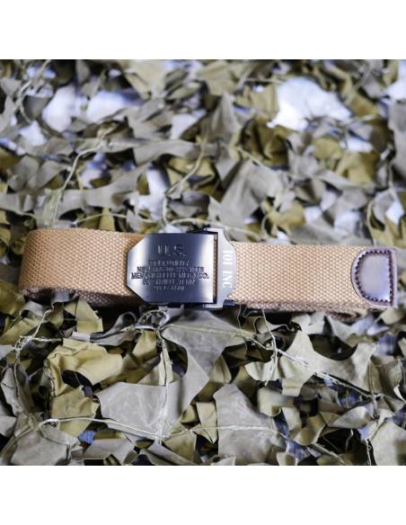 Belt canvas brand 101 Inc with loop removable available in three color. The buckle is engraved with the logo of "US".