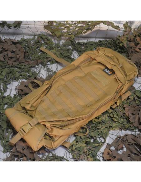 This storage bag, with its many pockets, can be unfolded to hold a long weapon, it also expands in thickness to double its storage capacity, so this bag takes up very little space, but can be unfolded to accommodate everything you need for your airsoft, hunting and shooting sports outings, it is also equipped with a belt for a better distribution of the load on the back.