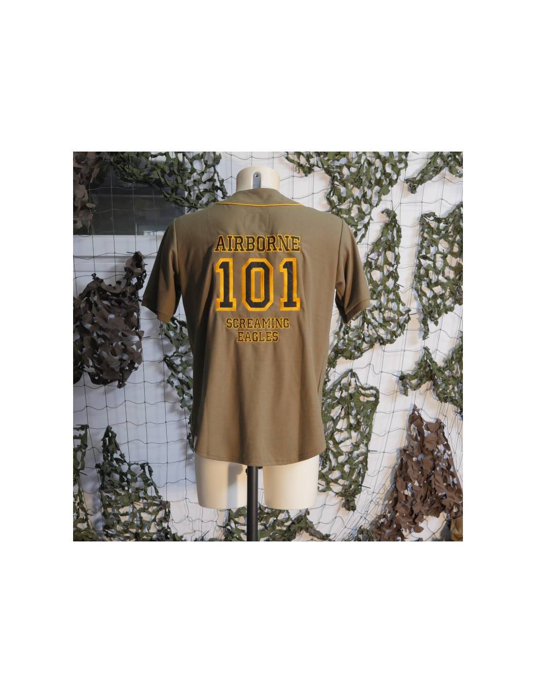 Découvrez la Chemise de Baseball 101e Airborne de Paratrooper, célébrant l'héroïsme de la 101e airborne de l'armée américaine. Arborant un vert kaki distinctif, elle est ornée des insignes emblématiques brodés à la poitrine et au dos. Une fusion parfaite de style et d'engagement militaire, avec une composition de qualité en 65% polyester et 35% coton.