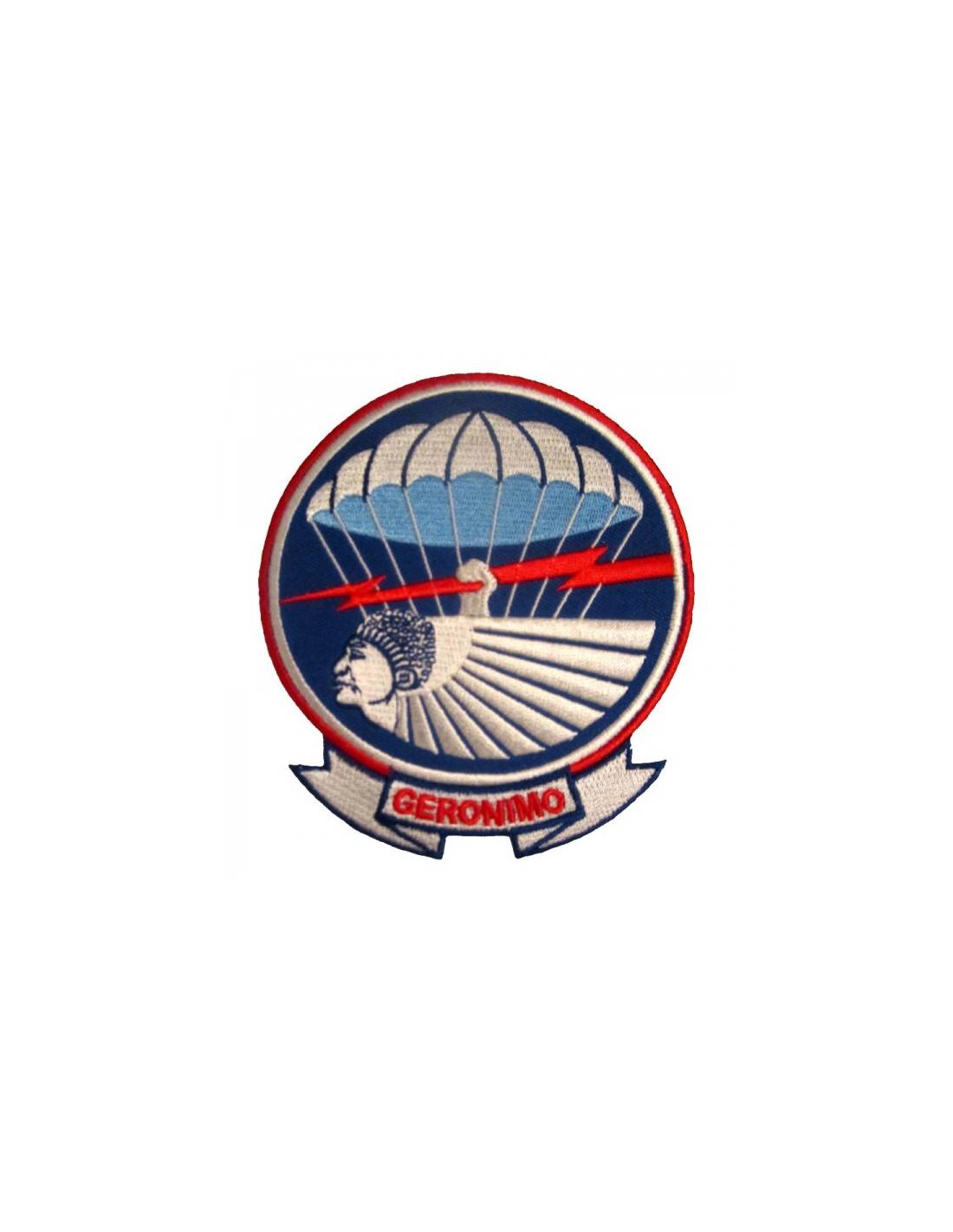 L'écusson du 501st Parachute Infantry Regiment "Geronimo" est un symbole emblématique de cette unité d'élite. Il représente un parachutiste en pleine action, armé et prêt à combattre, sur un fond bleu ciel, symbolisant le domaine aérien. Sous cette figure, on retrouve le mot "Geronimo", le cri de guerre adopté par les parachutistes pour symboliser leur audace et leur esprit intrépide, en hommage au célèbre chef apache. L'écusson capture l'essence du 501st PIR : un mélange de bravoure, de préparation au combat et de détermination inébranlable, des qualités qui ont permis à cette unité de se distinguer tout au long de la Seconde Guerre mondiale.
