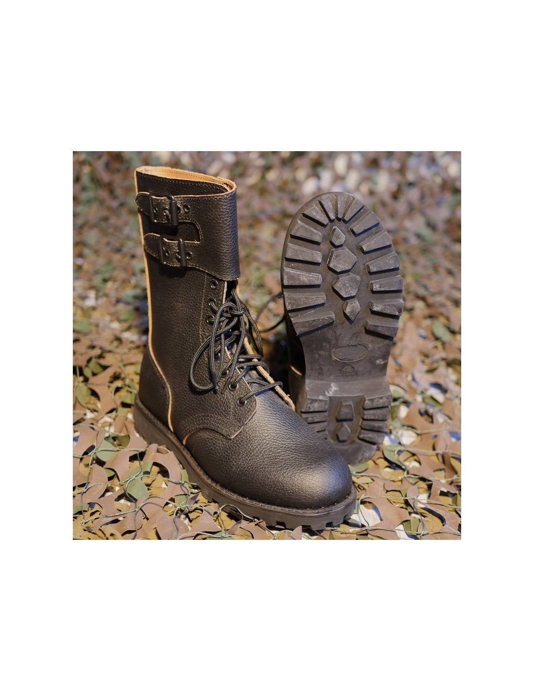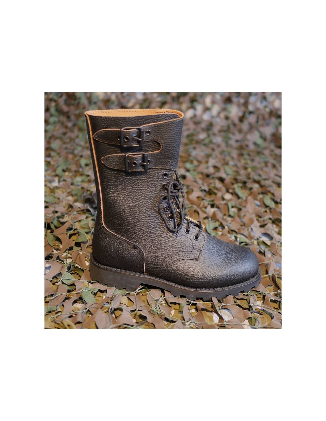 Ces rangers militaires réglementaires de l'Armée Française sont en cuir très solide. De fabrication française, ces rangers commando offre une résistance et un confort exceptionnel. Adaptées aux hommes comme aux femmes et sur tous types de missions, ces rangers tout terrain ont su faire leurs preuves au fil du temps au sein des forces armées. La doublure intérieure est également en cuir, ce qui assure une aisance optimale à l'utilisateur. Le rabat deux sangles apporte un confort et un maintien supplémentaire, en s'ajustant parfaitement autour du mollet.