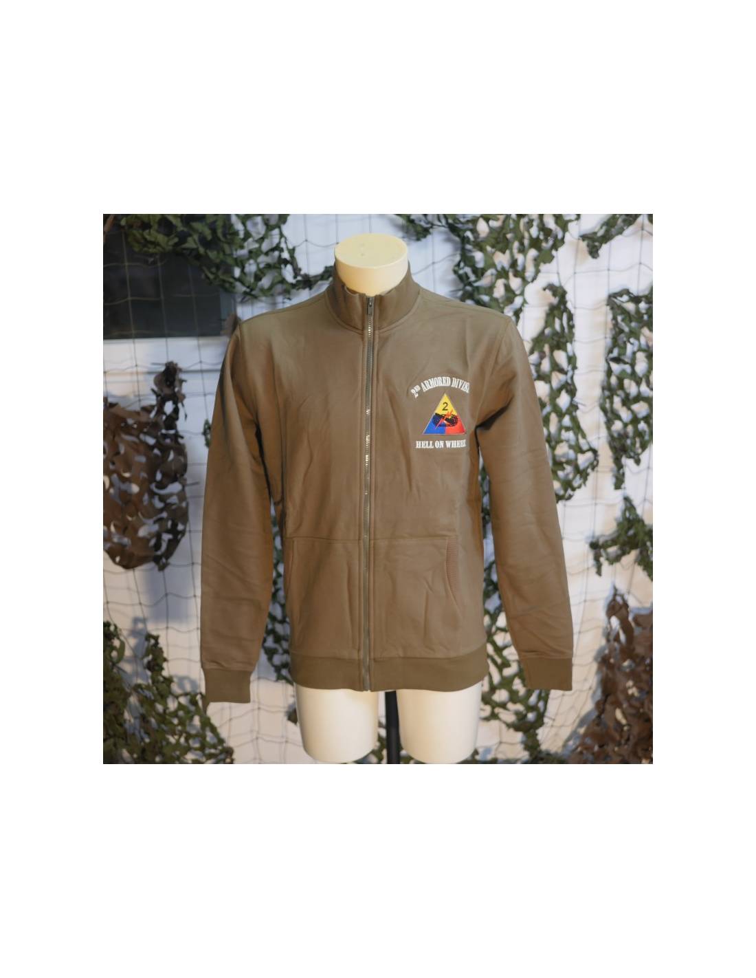Sweat zippé arborant les emblème de la 2nd Armored Division